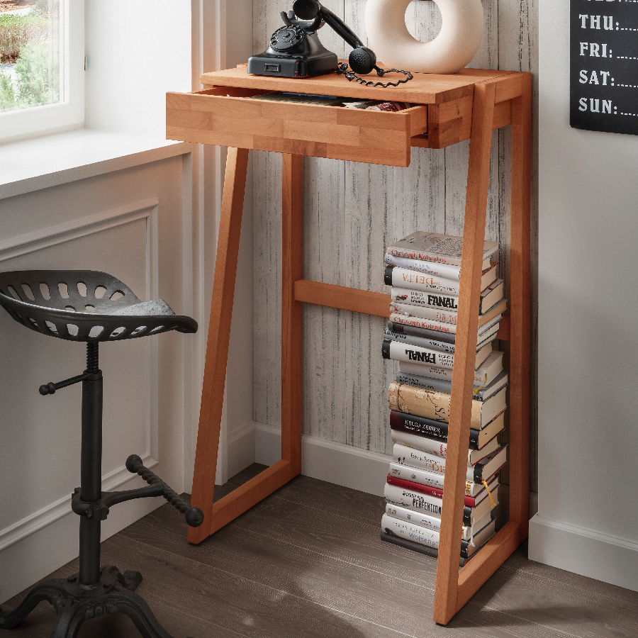 Uanset om du arbejder, studerer eller skaber, tilbyder dette skrivebord den perfekte arbejdsflade. Der er plads til både computer og papirer, og skuffen hjælper med at holde arbejdsområdet organiseret.